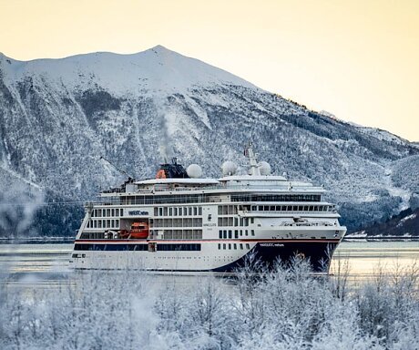 Ice, light and silent vastness: In the winter season from November until March, we offer a series of special voyages to the far north. They will take our guests along Norway's wintry fjord coast and into the icy world of Lapland - with the best views of the Northern Lights, fascinating nature and authentic winter experiences. Numerous departures from Hamburg or Kiel and Tromso make the cruises flexible to plan. The main focus of all tours is the observation of the aurora borealis: the current phase of increased solar activity - the so-called solar maximum - from 2024 to 2026 raises the chance of seeing the breathtaking celestial spectacle.