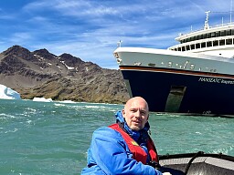 A fascinating passage via the Falkland Islands took us to South Georgia. You might not have heard of it, but in 1946, author Niall Rankin described the island like this: 'If you would take a giant knife and cut under the highest mountain ridges of Switzerland – precisely where the enormous glaciers tumble down into the valley – and if you then let your piece of mountain, dripping with glacial ice, fall into the sea here… I think you would get a good idea of this place.' I couldn't have put it better myself.