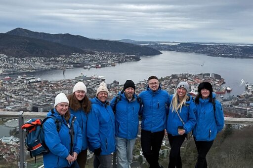 Our first stop was Bergen, a city full of charm and character. I joined a guided tour through the historic Bryggen area, learning about the city’s Hanseatic roots and wandering past the colourful wooden houses that line the old harbour. Afterwards, we took the cable car up to Mount Fløyen, where we were treated to incredible views over the city and surrounding fjords, despite the cold, it was a real highlight.